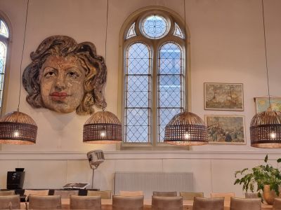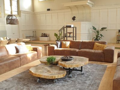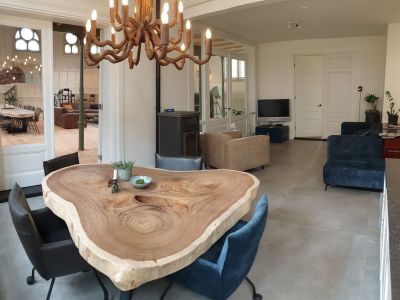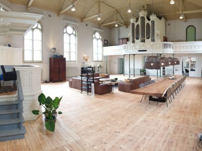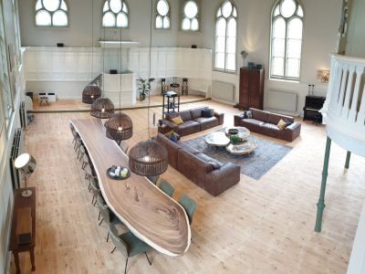 De Kapel is ingericht met meubelstukken uit onze eigen bedrijven Xyleia Petrified Wood en (voormalig) Lefulux Wonen.